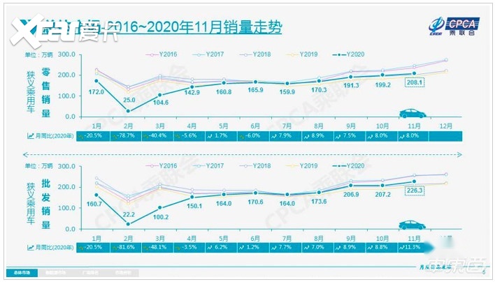 但实际情况是,7~11月,国内汽车销量稳步增长,11月份,国内车企共计售出了208.1万辆车,与去年同期相比还实现了8%的增长。